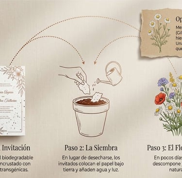 Hoy, el nuevo estándar de lujo no reside en el exceso, sino en la reducción de residuos. Vuestra "carta de presentación" es ahora una declaración de valores, demostrando que vuestra conciencia ambiental es el accesorio más distinguido de la temporada. Imaginad que vuestra invitación, lejos de ser un residuo, se convierte en un regalo para la tierra.