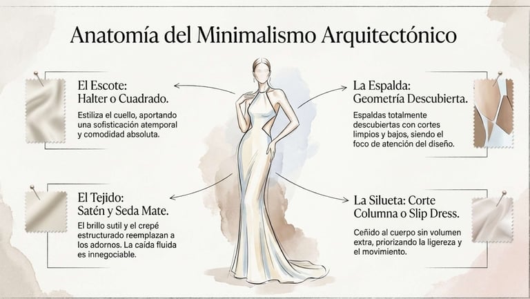 Minimalismo 90s: Se consolida el slip dress (vestido lencero de líneas puras) y los vestidos columna. Es el triunfo del "menos es más" para las que buscan elegancia sin esfuerzo.